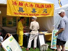 【明慧网二零零七年七月四日】二零零七年六月三十日和七月一日两天,美国波特兰的法轮功学员参加了在塞勒姆(Salem)城市每年一度的World Beat游园会,并在游园会的亚洲区设立了展位,向人们介绍什么是法轮大法,以及在中国无辜遭受中共残酷迫害的真相。