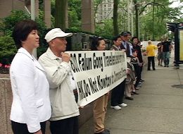 几位台湾籍法轮功学员也参加了抗议。一位刘女士透露,由于她的名字在黑名单上,于二零零二年从台湾去香港时曾遭到无理遣返。她认为香港主权移交后所标榜的自由民主是虚假的。