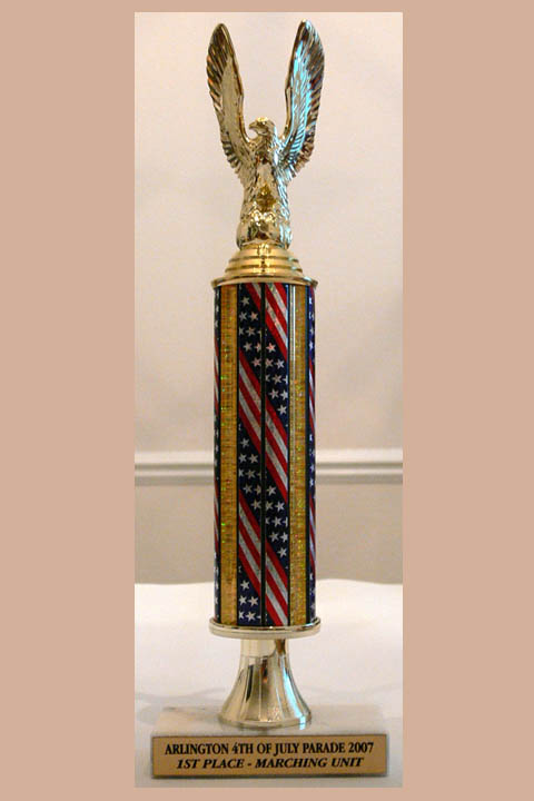 在阿灵顿市独立日游行中,德州天国乐团荣获军乐团头奖