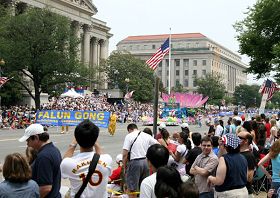 ![]() 法轮功学员的队伍行进在首都华盛顿DC的宪法大道上 |
