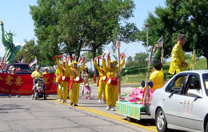 【明慧网二零零七年七月六日】二零零七年七月四日,在美国科州丹佛(DENVER,COLORADO)北部的哥瑞理(GREELEY)镇,八万人观看了一年一度的传统独立日大游行。科州法轮功学员的队伍给人们留下了深刻的印象。