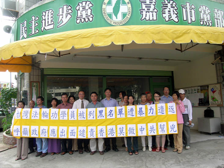 嘉义法轮功学员向民进党陈情,谴责港府暴力遣返并与陈茂松主委合影