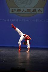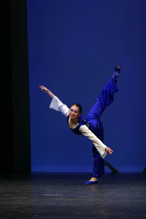 ![]() 选手刘辛迪所参赛的舞蹈是“梅”,表现梅在寒风中的坚定和容忍,有激烈的抗争,也有战胜严寒后的喜悦和欢快。她在这个舞蹈中旋转、翻、弹跳等动作若行云流水。 |