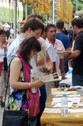 ![]() 信息台前,人们专注的了解法轮功被迫害真相 | ![]() 人潮中不断有人停下和法轮功学员交谈 |