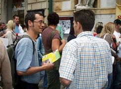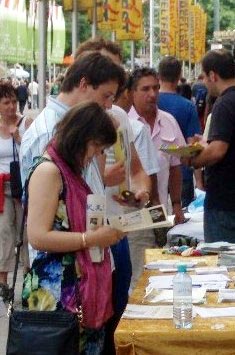有一位男士表示不解,为何教人做好人的法轮功,这样一个好功法,会被政府迫害。一位学员向他解释道,中国共产党及前党魁江泽民害怕法轮功,因为法轮功修炼者按法轮功的原则“真、善、忍”要求自己,自己明辨是非,以谎言和暴力维持统治的中共担心这些人不好控制。当学员说到这时,这位男士马上明白了迫害的真相。他对中国目前的情况表示遗憾,衷心感谢学员并祝愿学员在制止迫害的活动中取得成功。