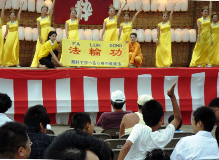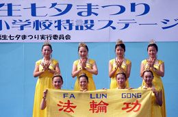 八月四日,法轮功学员参加了东京都福生市七夕节的舞台演出,表演了法轮功学员创作的表现“真善忍”精神的舞蹈,并展示和讲解了功法。学员们的表演获得了主办单位的赞赏。