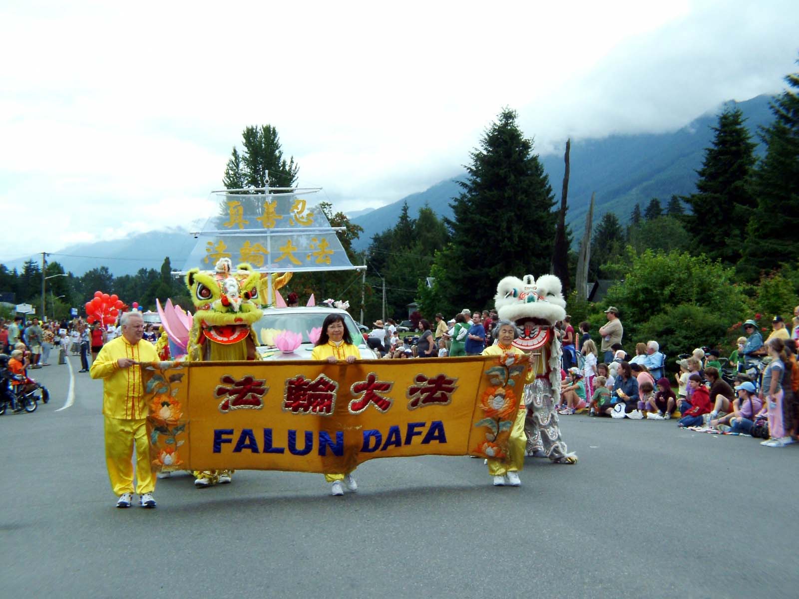 也许读者还记得今年六月六日在斯诺阔米山谷报(Snoqualmie Valley Record) 头版报导的“斯诺阔米市的国际事件 - 褒奖颁发后,斯诺阔米市市长和法轮功学员会面中国外交官” 一文 (详文请参阅 https://www.minghui.org/mh/articles/2007/6/14/156905.html)。 该市和附近城市的市民们因此而进一步了解了法轮功和发生在中国的迫害。在今年的游行中,人们为法轮功的队伍热烈鼓掌。法轮功学员的花车以庄严的“法船”造型、绚丽的色彩、祥和美好的炼功场面吸引了男女老少。腰鼓队的表演更使人们精神抖擞。