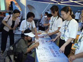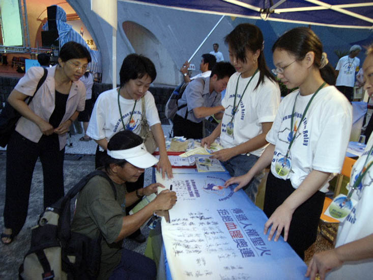 【明慧网二零零七年八月十一日】(明慧记者台北采访报导)由「法轮功受迫害真相联合调查团(CIPFG)」发起的「传递人权圣火 拒绝血腥奥运」活动,台北时间二零零七年八月十日晚间在台北市二二八纪念公园音乐台广场举办「人权圣火之夜」,向民众揭示这场传递活动的出发点与目的。全场坐满热情关心的民众,多位致力人权的来宾出席,纷纷发言表示对于中共活摘法轮功学员器官贩卖牟利暴行的严厉谴责,质疑二零零八北京奥运的存在是一场镇压人民的血腥奥运,呼吁各界共同努力,早日终止中共的迫害。