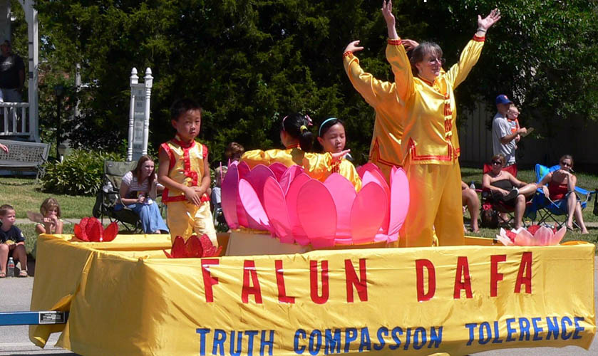 烈日下,法轮功学员给沿途观众们带去了一片祥和、宁静。“天啊!真是太美了!”一位观众一面观看着法轮功学员的花车,一面激动的赞叹道。尽管天气酷热,小弟子们仍然认真的演示着功法,赢得了观众们阵阵的掌声。许多观众接到资料后,立即迫不及待的阅读起来。