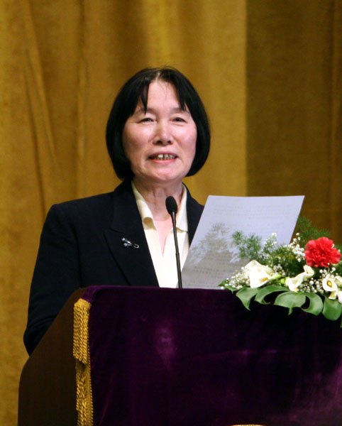 图:韩素秋在二零零七年纽约法轮大法心得交流会上发言。