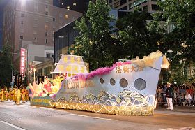 ![]() 法轮功“大法船”花车在此次游行中荣获最佳“制造工艺”奖 |