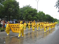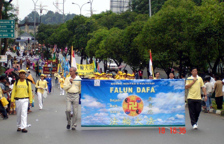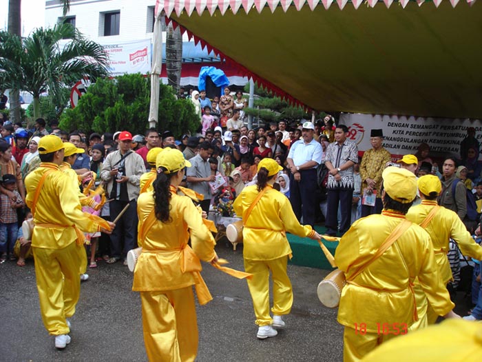 【明慧网二零零七年八月二十日】二零零七年八月十七日是印度尼西亚独立日,十八日印尼巴淡岛举办大型游行活动,巴淡岛法轮功学员及新加坡学员组成的腰鼓队应邀参加。
