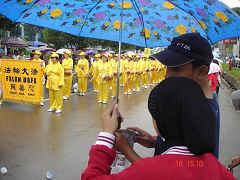 印尼巴淡岛独立日游行 法轮功队伍受欢迎(图)