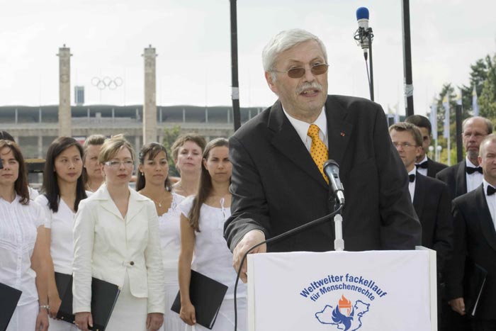 德国“在共产暴力统治下的受害者联盟”(UOKG)主席瓦格纳(Wagner)先生,代表该联盟旗下的,由前东德和苏联占领区受到共产党迫害的人士组成的三十五个协会发言说:“一九三六年的奥运会使希特勒的独裁统治在国际舞台上得以壮大。那一届奥运是一个缺少伦理道德的运动会,但却是纳粹最大的宣传秀。今日我们又面对着几乎相同的情形。这一次不是在德国,而是在中国。这一次不是纳粹,而是红色法西斯,一个共产邪党独裁的一党专制国家,他们欺压奴役这个国家的人民,正象七十年前的希特勒和纳粹所做的一样。”