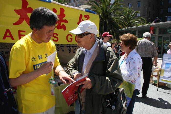 据旧金山法轮功学员Rose介绍,主办单位非常支持法轮功。法轮功学员每年都在韩国日庆祝活动中设有摊位,向民众介绍法轮大法的美好,揭露中共迫害法轮功的罪恶。学员还经常向韩裔社区洪法。今天就有人购买了韩文《转法轮》。