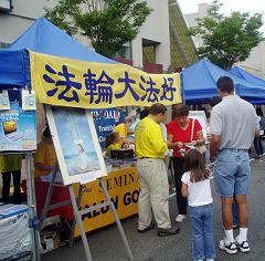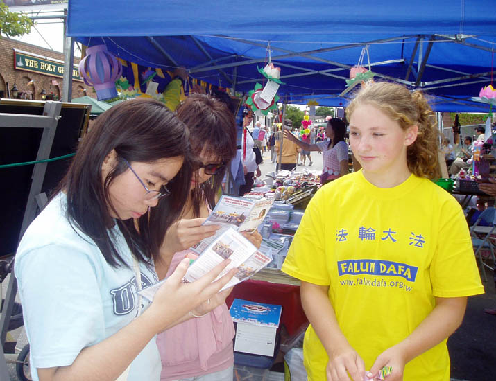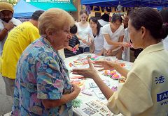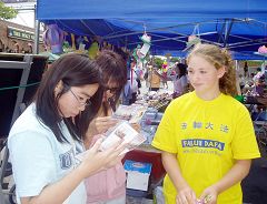 ![]() 法轮功摊位吸引各族裔有缘民众 |
