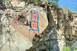 ![]() 法轮功学员在田间、道边挂真相标语 |