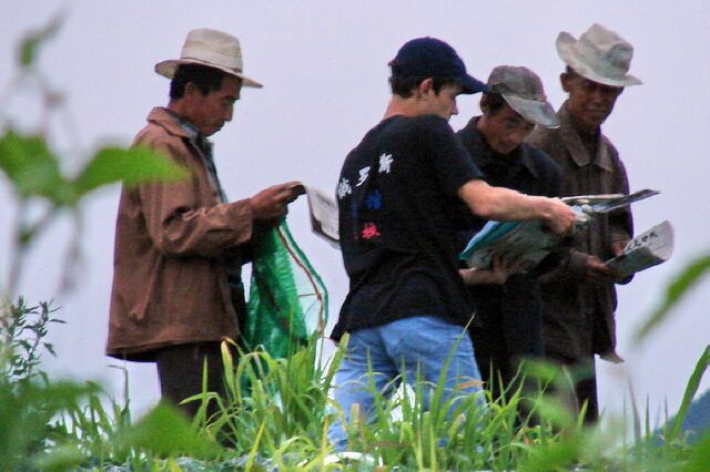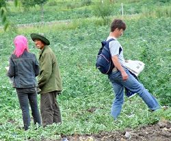 ![]() 法轮功学员田间送真相,明白真相的人签名退党 |