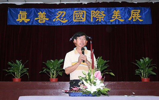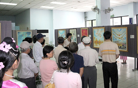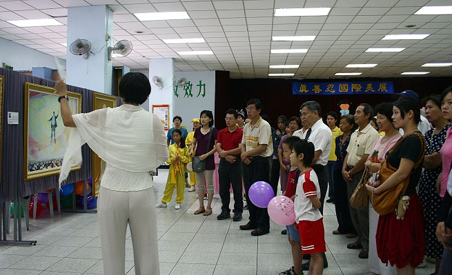 【明慧网二零零七年八月二十六日】巡回了三十多个国家逾百场的“真善忍国际美术巡回展”,二零零七年八月十七日在台北县三峡镇的长青活动中心开始了为期十天的展出,隔天的揭幕典礼邀请到了三峡镇机要秘书张佑玮、安溪国小蔡永利校长、安溪里吴进义里长等嘉宾到场观礼致词,并吸引了许多三峡当地民众入场观赏。