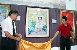 法轮大法学会理事长张清溪教授与三峡镇机要秘书揭开画作“净莲”