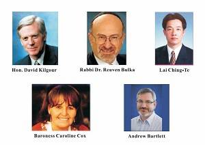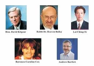 加拿大前国会议员大卫•乔高(上左)和“法轮功受迫害真相联合调查团”(CIPFG)四大分团团长:北美团长鲁文•鲍克,犹太领袖及学者,加拿大东部肾脏基 金会器官捐赠委员会主席(上中);亚洲团长赖清德,台湾立法委员(上右);欧洲团长卡罗琳•考克斯,英国上议院议员(下左);澳洲团长安德鲁•巴列特,澳大利亚国会参议员(下右)。