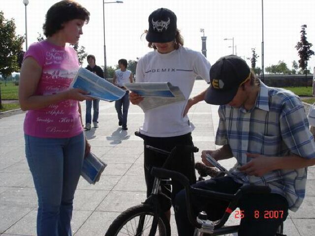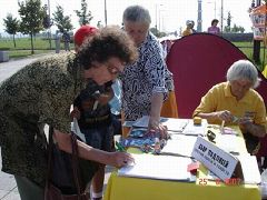八月十八日和二十五日,法轮功学员们分别在图哈切夫斯基元帅大街边的公园和“圣彼得堡三百年”公园里,举办了洪法讲真相活动。