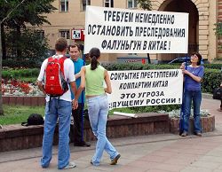![]() “立即停止(中共)对法轮功学员的迫害!(帮助)中共隐瞒罪行是对俄罗斯未来的威胁!”面对这样的横幅,两个年轻人想知道更多真相 |