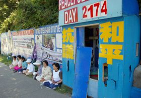 据了解,温哥华法轮功学员在中领馆前的二十四小时和平抗议活动从二零零一年八月二十日开始,已经持续六年了。六年来,法轮功学员无论酷暑寒冬,风里雨里,不论是年已七、八十岁的老人,还是年轻的上班族,学员们轮流着锲而不舍的坚守在这里。