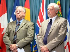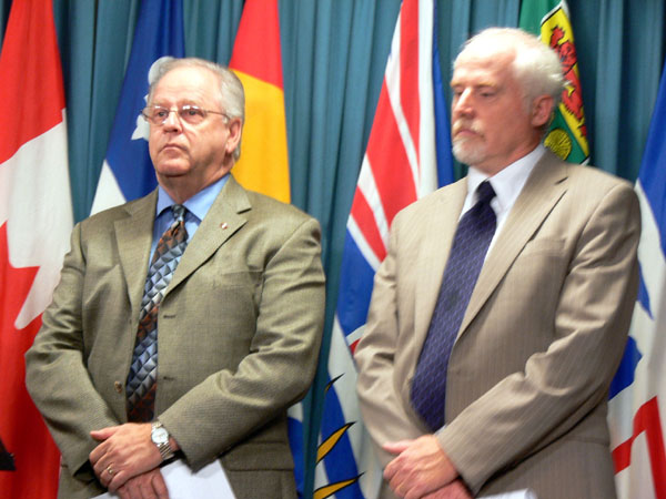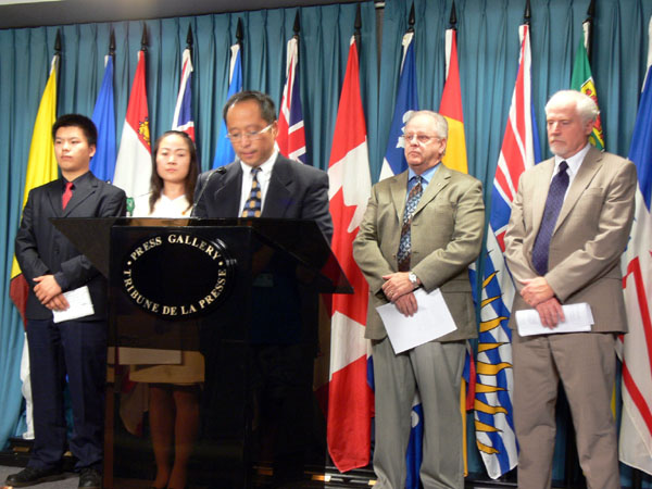大赦国际加拿大主席阿里克斯•奈夫(右)和新民主党国会议员韦恩•马斯通(左)要求总理向胡锦涛提中国人权问题,并停止迫害法轮功。