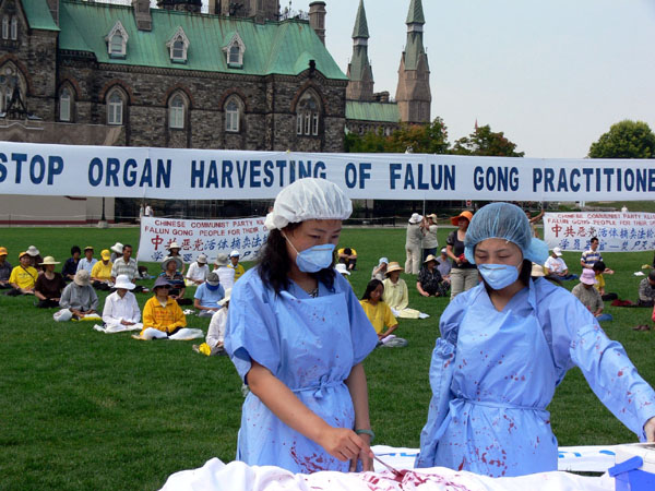 在加拿大国会山前举办反酷刑展,“共同制止中共活体摘取法轮功学员器官”。