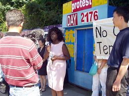 张春雨表示,要想知道谁是幕后凶手很简单,就是那些最不希望法轮功学员在这里抗议的人。张春雨说他不会被吓倒,他会继续在这里抗议。