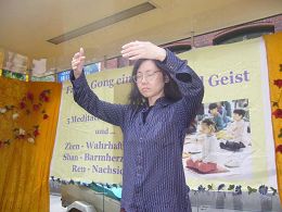 ![]() 展示祥和的法轮功功法 |