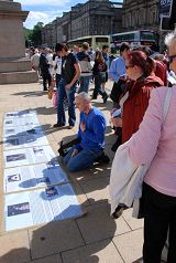 ![]() 这位男士仔细阅读了真相展板,他为中国法轮功学员所遭受的迫害而深深难过 |