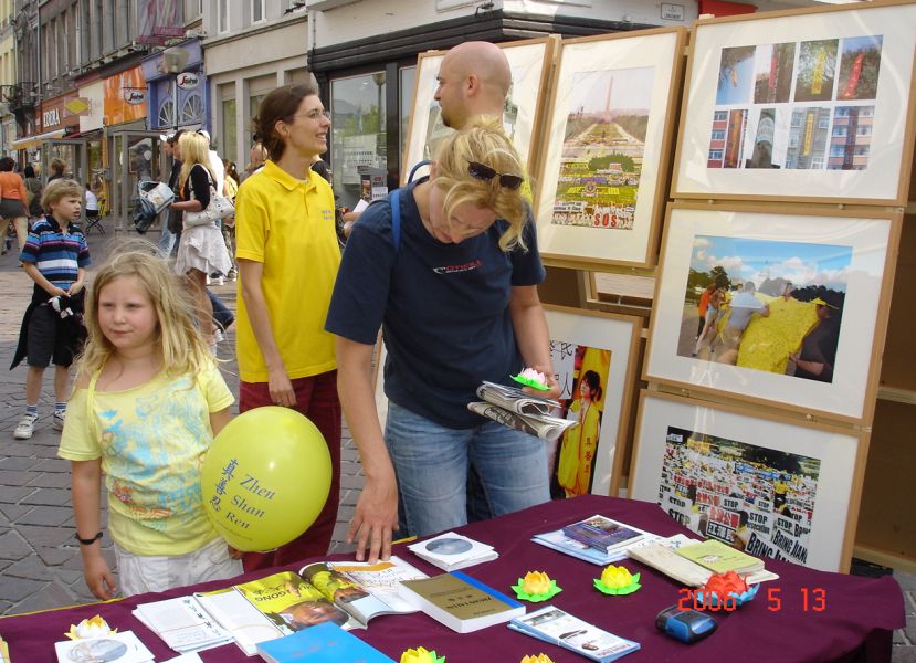 同时法轮功学员也通过在街上设立信息摊位,向路人发送真相材料,用真人模拟演示法轮功学员所遭受的酷刑折磨等形式向比利时的民众讲真相。有不少比利时人是在迫害开始后修炼法轮功的。