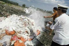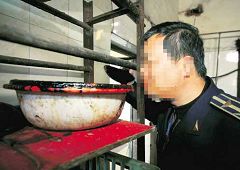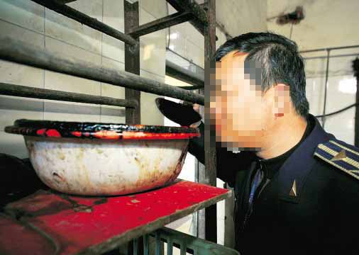 ![]() 用牛血兑洗衣粉和味精,做成鲜嫩的“鸭血”,卖给饭馆 |