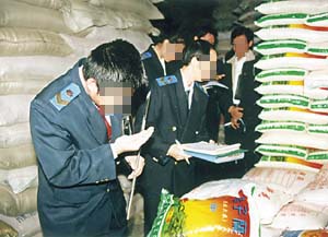 ![]() 在面粉里掺上廉价的滑石粉或大白粉,既增加了份量又使面粉雪白好看又好卖 |