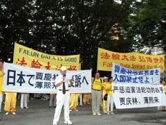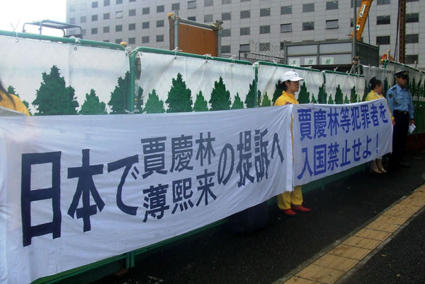 ![]() 日本法轮功学员国会前抗议迫害法轮功的凶手贾庆林和薄熙来 |