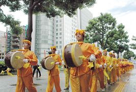 ![]() 九月十五日,数百名来自日本各地的部份法轮功学员聚集神户市举行了声援活动,在神户的主要街区进行了近三个小时的大型游行。 |