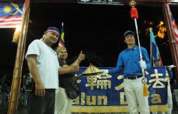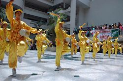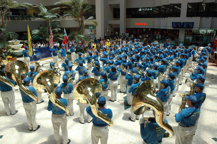 【明慧网二零零七年九月二日】二零零七年八月三十一日是马来西亚五十周年国庆,台湾法轮功学员组成的天国乐团来到马来西亚沙巴州(Sabah)首府哥打晋那巴鲁(Kota Kinbalu)参与当地的庆典活动,并到各个地点演奏。除了《法轮大法好》、《送宝》等曲子以外,天国乐团还吹奏了马来西亚国歌,所到之处受到民众的热烈欢迎。这是继五月份在马来西亚首都吉隆坡演出过后,天国乐团第二次到马演出。