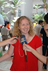 当天晚上在海边美食中心的第二场演出,民众高呼“安哥”,要求再来一首。米尔达深受触动,演出结束后赠送纪念品给天国乐团,在和天国乐团合照时发自内心高呼:“法轮大法好!”