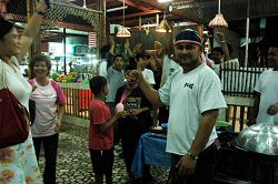接着下午天国乐团到哥市海边的美食中心前演奏,同样引来阵阵热烈的掌声和欢呼声。卖烤鱼的老板米尔达.莫哈末(Mirdat Mohd)接受采访时眼眶泛红,他说:“很好!希望明年可以再来,带来更动听的曲子。”米尔达表示,他很高兴台湾人可以把马来西亚国歌吹奏的那么好,演奏没有瑕疵。“好!非常好!非常感动,感动的想流泪。”他的伙计们也纷纷赞同。