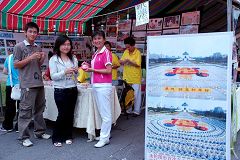 社团博览会的活动也安排各社团上台表演,展现各自的特色。法轮功社团演示了五套功法,顿时把热闹的校园带入一个宁静祥和的氛围里。功法演示后,一位社团学生在台上向新生介绍了法轮功在世界各地的蓬勃发展,以及在中国大陆受迫害的情况:他说:“目前在全世界已经有八十几个国家的人民在修炼法轮功,只有一个国家不允许炼,那就是中共统治下的中国,请大家了解法轮功真相,认清中共迫害法轮功的邪恶面目”。