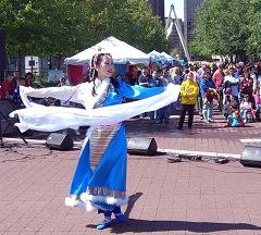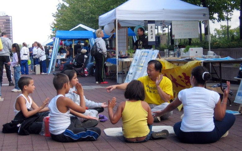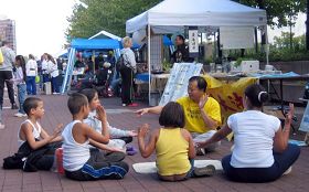 【明慧网二零零七年九月二十五日】二零零七年九月十五日,在美国康州哈特福(Hartford)的河前广场(Riverfront Plaza) 举办了第七届亚洲节日与龙舟竞赛。法轮功学员在集会上摆设真相摊位、并参加舞台演出,节目包括:展示法轮功功法、二胡演奏“普度”和舞蹈,吸引了许多有缘人前来了解法轮功真相和一些小朋友来学炼法轮功。