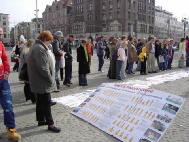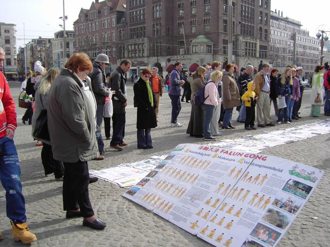 二零零七年五月六日,荷兰法轮大法学员在阿姆斯特丹达姆广场举行征签活动,呼吁欧盟以实施公开对话的方式,敦促中共释放被非法关押的法轮功学员,谴责并制止中共对法轮功的迫害。