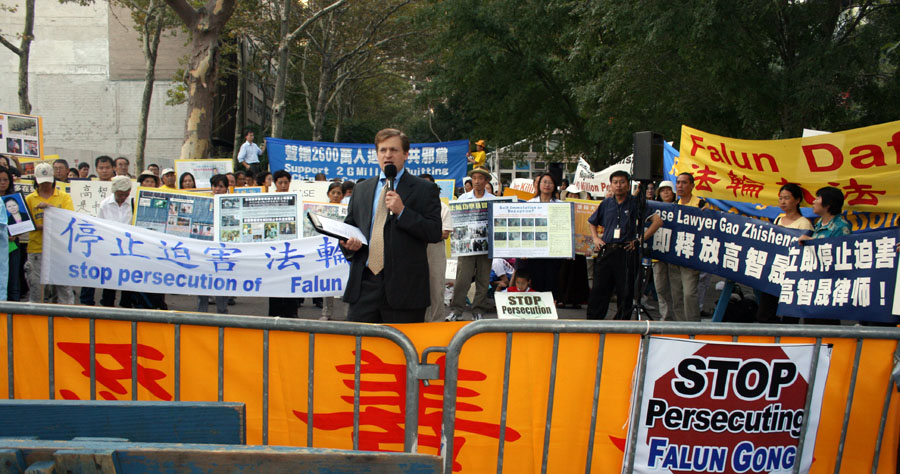 中国民主党代表唐元俊、方能达、王军等也出席了集会并作发言,呼吁制止中共暴政,结束迫害法轮功,声援高智晟律师。
