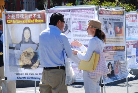 ![]() 路人在图片展前了解在中国还在持续发生的迫害 |