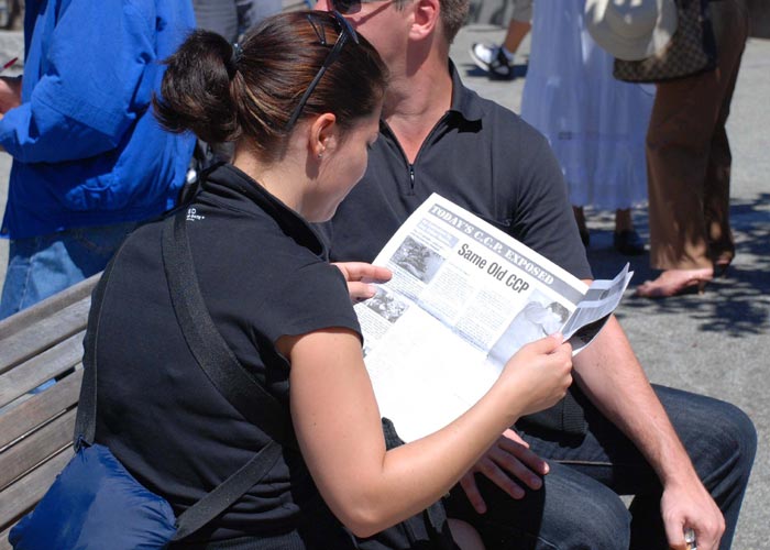 ![]() 路人认真阅读揭露中共暴行的真相资料 |