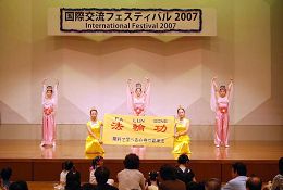 这次大会是由东京都八王子市主办的,八王子市长亲自到场祝贺。随着大法的洪传,八王子地区的法轮功学员也越来越多。法轮功学员作为市民向市长亲切的递上真相资料和印有“法轮大法好”字样的手工莲花。市长关切的说:“听说你们在中国很不容易,请加油啊。”法轮功学员回答说:“我们一定会加油的。”市长还欣然与身着中国传统服饰的法轮功学员留影纪念。