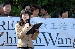 九月三日,王晓丹从悉尼赶到墨尔本,参加了由墨尔本法轮大法学会主办的新闻发布会,抗议中共当局对父亲和大陆法轮功学员的迫害,呼吁澳洲政府和民众伸出援手,制止中共暴行。