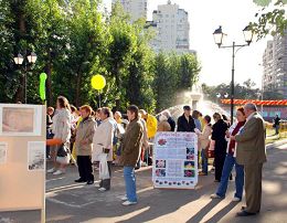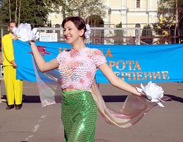 【明慧网二零零七年九月五日】俄罗斯法轮功学员于二零零七年九月一日和九月二日连续两天参加了知识节和莫斯科城市节的庆祝活动。学员们以歌舞、功法演示和叠纸莲花传真相等形式,把法轮大法的美好展现给莫斯科市民,也发了很多报纸和资料,介绍什么是法轮功以及中共对这群信仰“真善忍”的法轮功修炼者的残酷